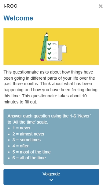 The I-ROC is designed for use by adults who may have been experiencing a range of difficulties with their mental health and wellbeing.