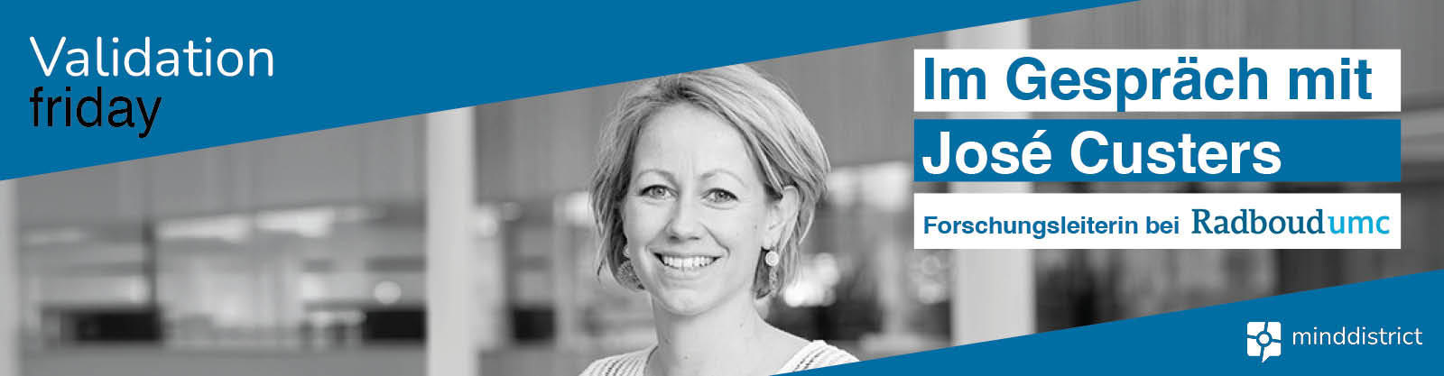 Die Gesundheitsversorgung verbessern. Das ist das Ziel von Minddistricter Barry Meesters. Genau wie die Forscher, Universitätskliniken und Gesundheitsorganisationen in den Niederlanden, mit denen er täglich zusammenarbeitet. Gemeinsam engagieren sie sich für die Entwicklung, Validierung und Verbreitung von Online-Interventionen, die wirklich etwas bewirken. Für die Rubrik „Validation Friday” spricht Barry mit Forschern über ihre persönlichen Motivationen, ihr Engagement und die Auswirkungen ihrer Arbeit.