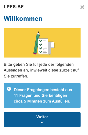 Der LPFS-BF 2.0 kann von Patient:innen in wenigen Minuten selbst ausgefüllt werden. Er umfasst die Bereiche:
