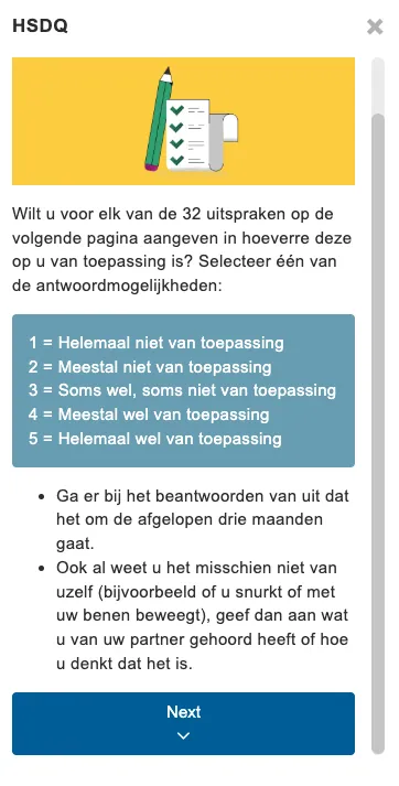 De HSDQ kan worden gebruikt voor volwassenen met (mogelijke) slaapproblemen.