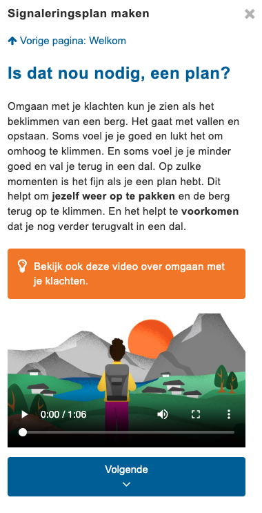 Het opgestelde plan vinden cliënten terug op hun homepagina in het plan ‘Jeugd: Signaleringsplan’. Met behulp van het plan weten jongeren goed wat zij kunnen doen om een terugval te voorkomen. En wat voor acties zij kunnen ondernemen als ze merken dat het toch wat slechter gaat.