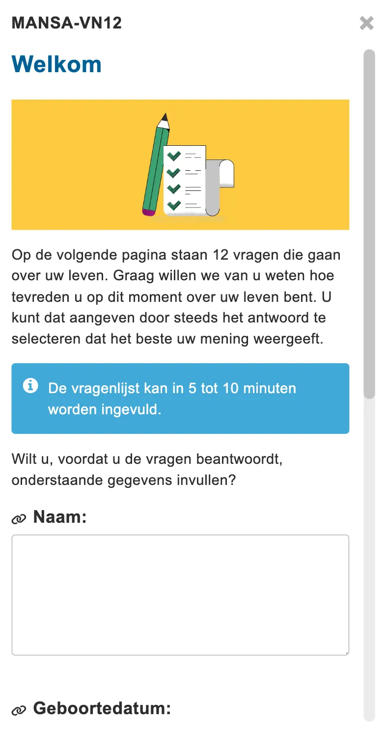 Meet de kwaliteit van leven met de MANSA VN (16 en 12) vragenlijsten