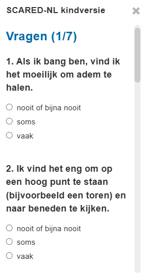 De vragenlijst is bedoeld voor kinderen en jongeren, van 7 tot 19, en gebruik je om in kaart te brengen welke symptomen het kind mogelijk heeft.